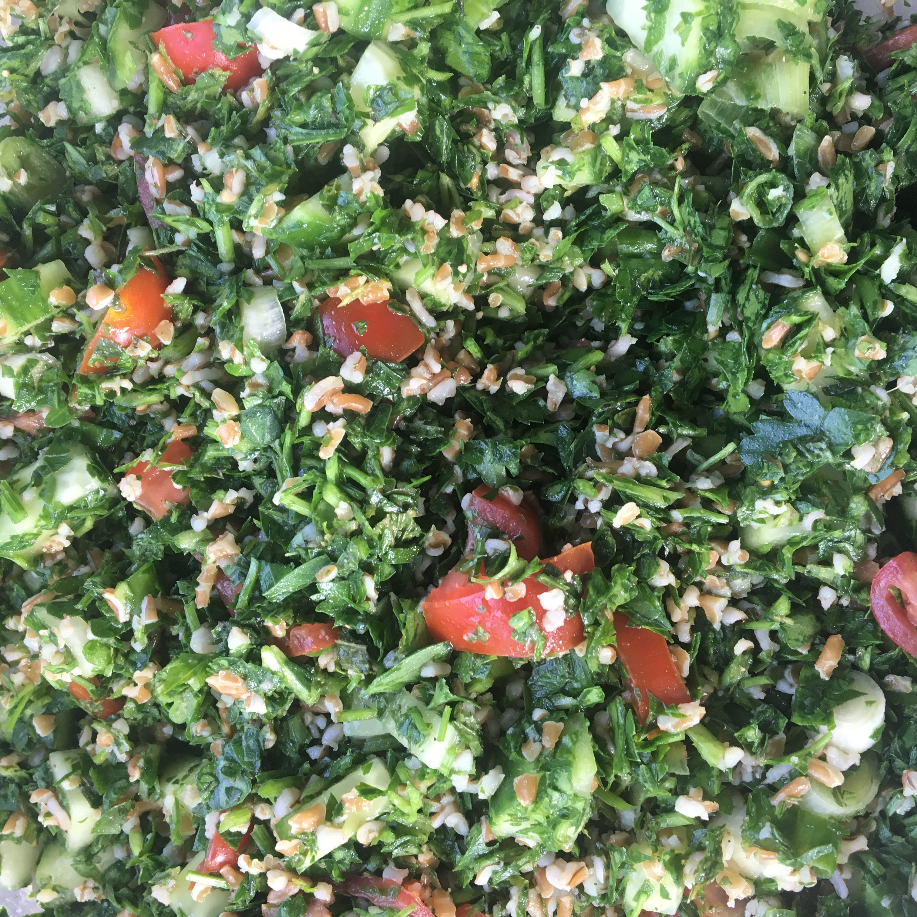This middle eastern salad is soooo great! If you have a food processor-put it to work on the parsley and mint to save time.